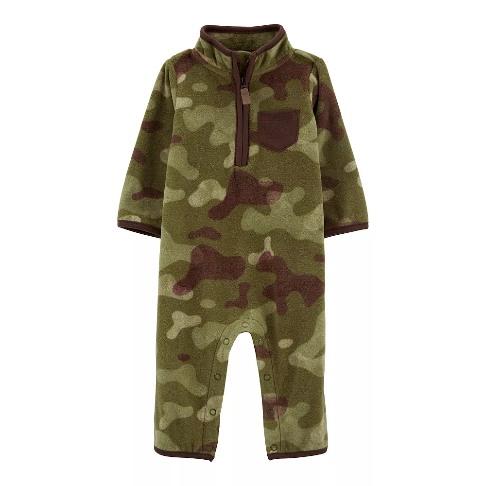 Layer him in Carter’s style with this camo and fleece coverall jumpsuit.