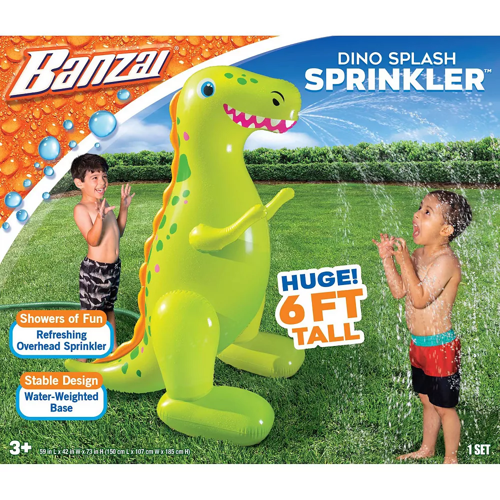 - Includes: inflatable dino sprinkler