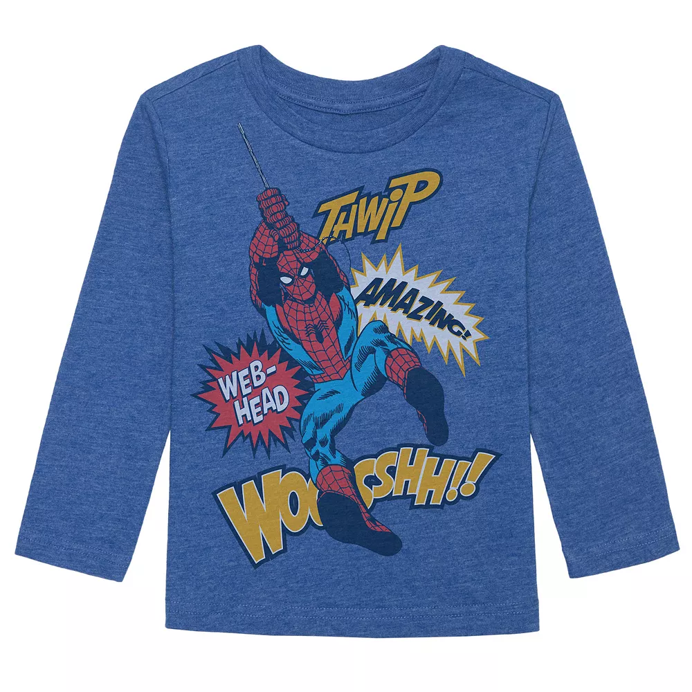 He’ll love showing off his favorite webslinger in this boys’ long sleeve Spider-Man graphic tee from Jumping Beans.