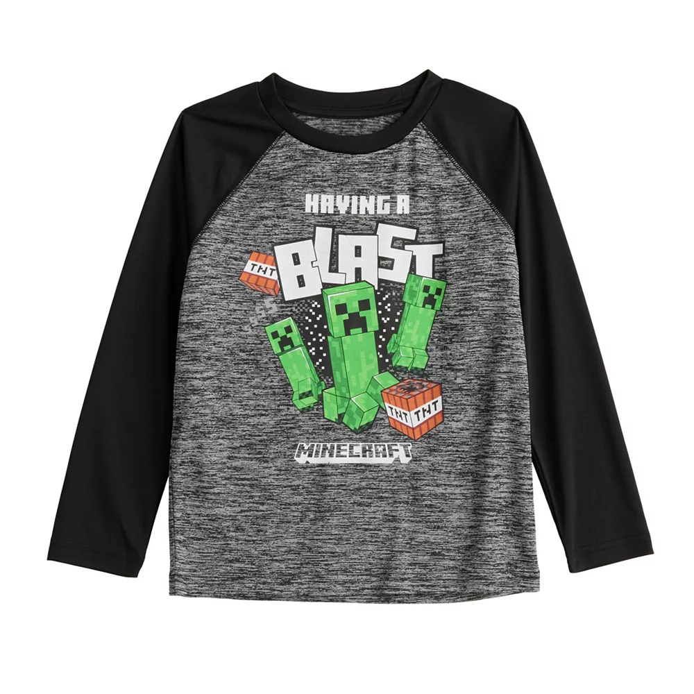 Your little gamer will love his look in this boys’ Minecraft raglan graphic tee from Jumping Beans.