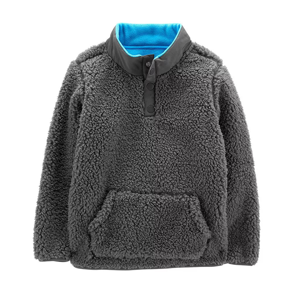 This boys’ Carter’s pullover is the ideal layering piece on cooler days with a sherpa fabric and quarter zip front.