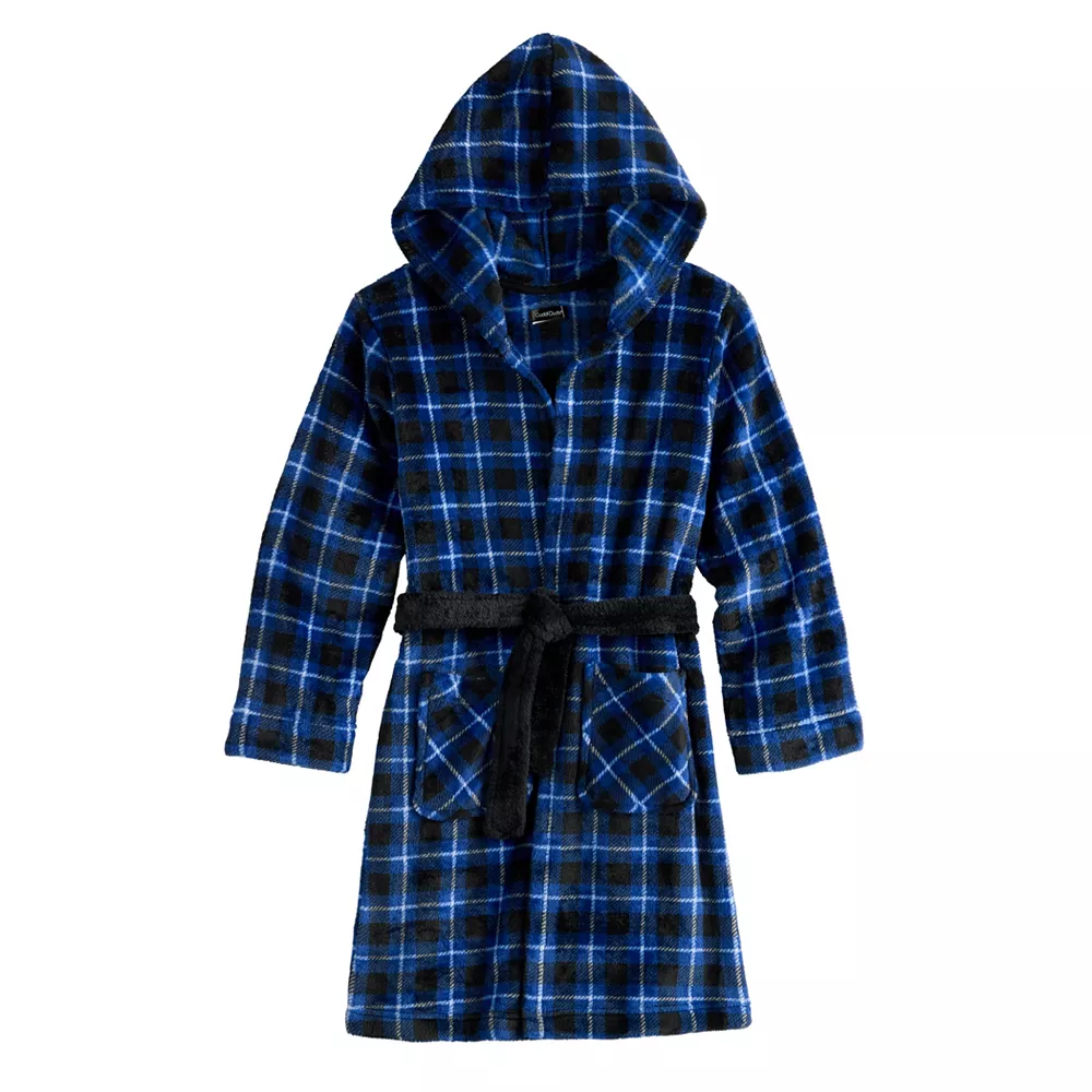 Perfect for keeping cozy on laid-back lounge days, he’ll love this boys’ hooded robe from Cuddl Duds.