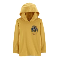 Keep him warm while he chills out in this super soft hooded tee, with sporty graphics on the front and back.