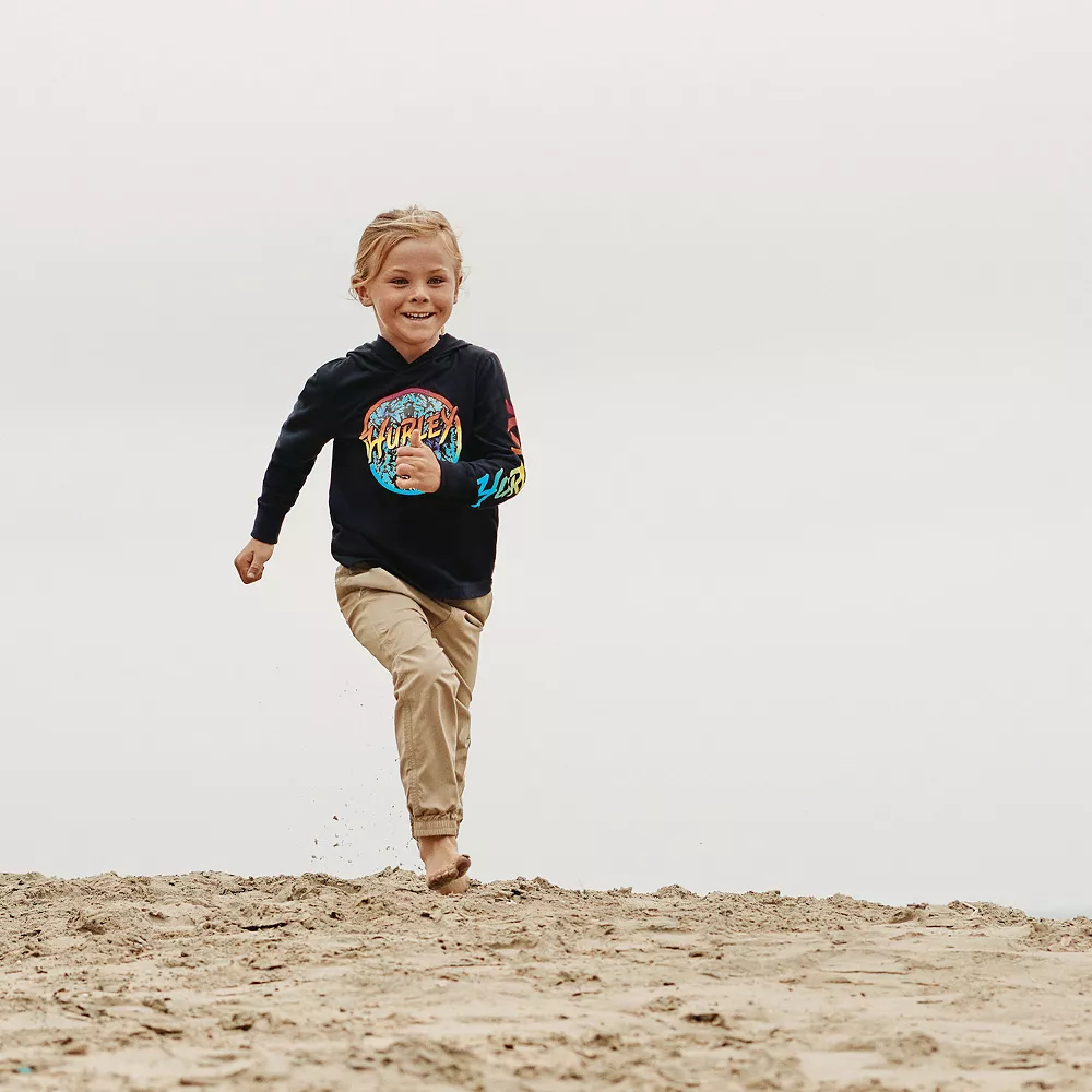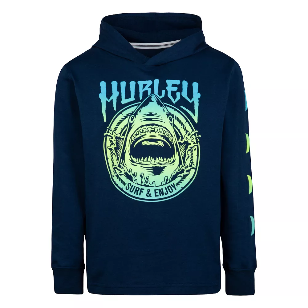 Surf’s up! Keep him cozy while he chills out in this boys’ Hurley graphic hooded tee.