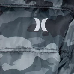 Make sure he stays warm and cozy in this boys’ hooded puffer jacket from Hurley.
