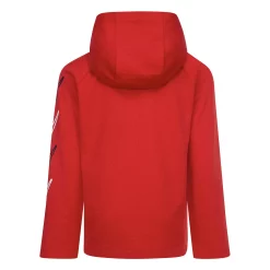 With its moisture-wicking, thermal construction, this boys’ hooded long sleeve graphic tee from Nike will keep him comfy all day long.