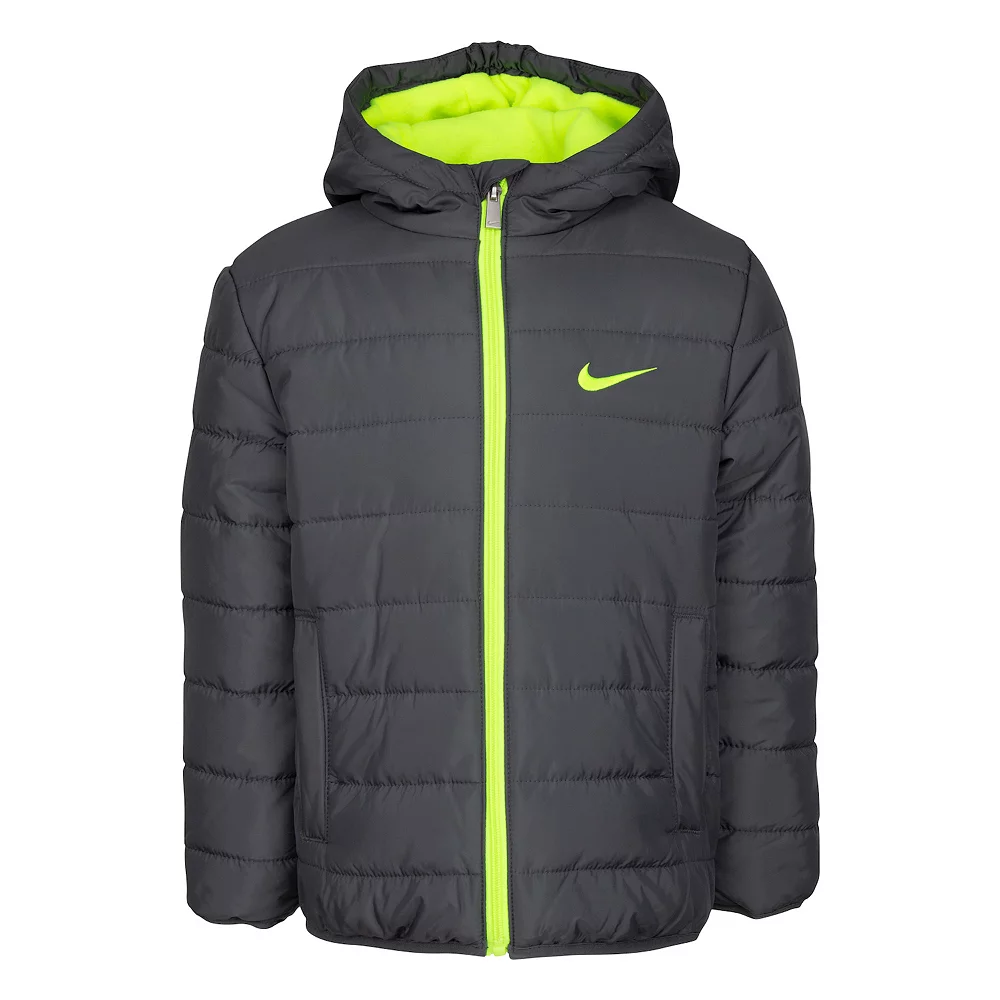 Your Nike fan will love the warmth and style of this boys’ full-zip puffer jacket.