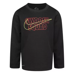 He’ll look cool and feel comfy all day long in this moisture wicking boys’ thermal graphic tee from Nike.