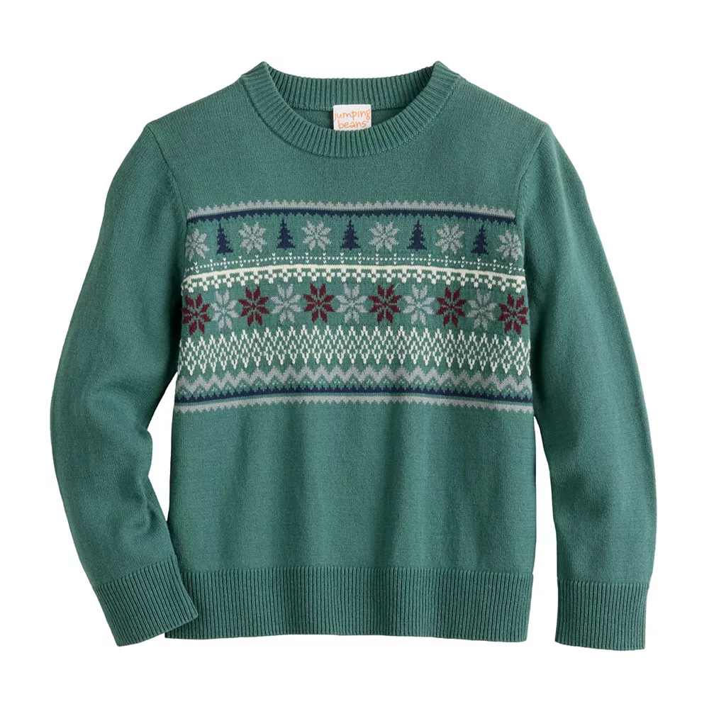 This snowflakes and trees knit sweater by Jumping Beans keeps him looking sharp this holiday season.