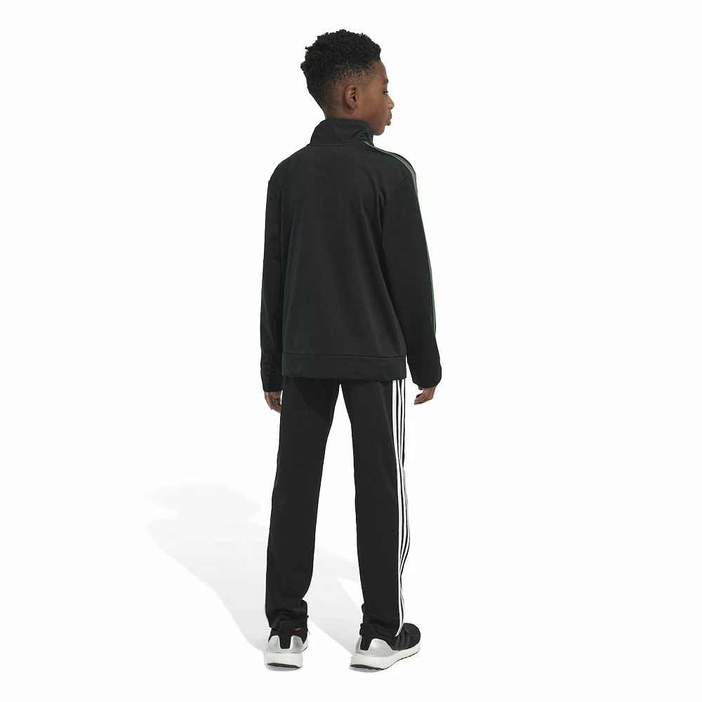 Like an ordinary jacket, but leveled up a few notches. This boys’ track jacket has a bold two-color design. Iconic adidas 3-Stripes wrap the sleeves to put a fresh spin on heritage style. Slightly shiny tricot finishes it off.