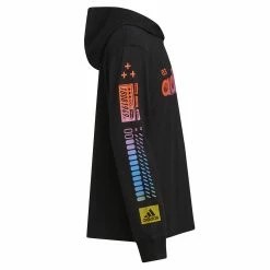 Calling all gamers. This boys’ hoodie t-shirt levels up his adidas look with designs inspired by video games. Soft cotton is comfortable enough for a marathon session or anytime. It’s easy to wash and wear over and over.