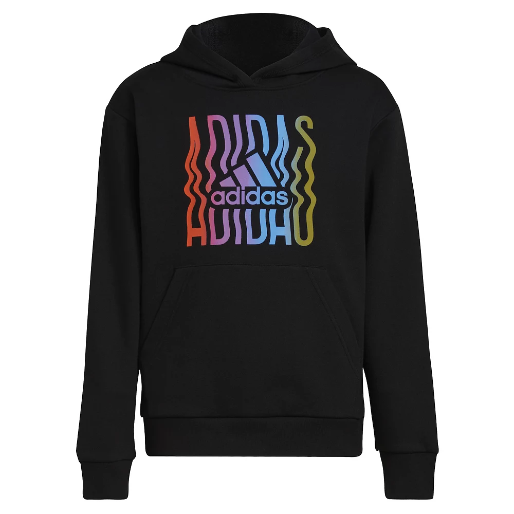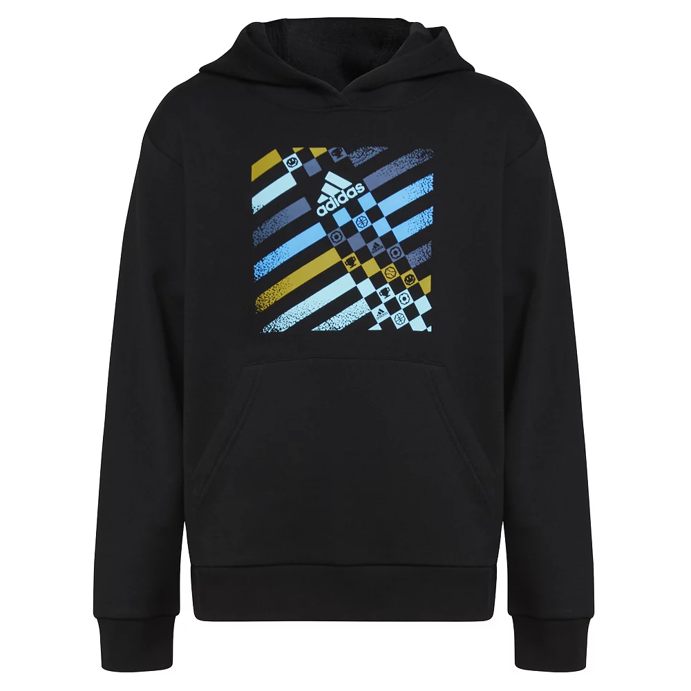 Don’t settle for ordinary. Bright colors and geometric details level up the look of this boys’ adidas hoodie. Soft, warm fleece means he’ll be comfortable all day long. Wash it, wear it and repeat.