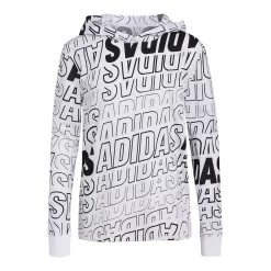 This boys’ long sleeve hooded t-shirt gets the message across with an allover adidas print. It’s made of cotton-blend jersey that’s soft, durable and machine-washable. He can wear this hooded tee alone or layer it with a sweatshirt.