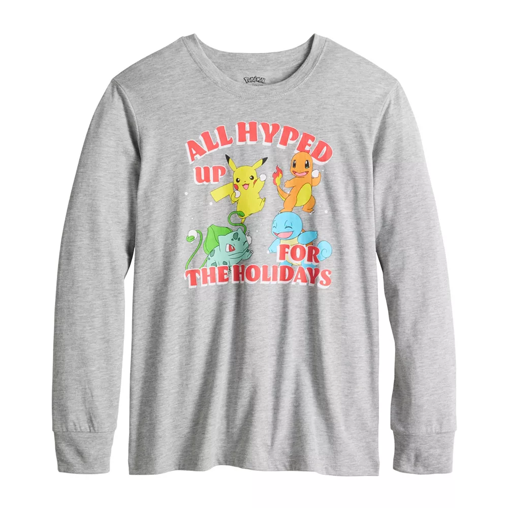 Your super fan will be ready for the Holiday season with this festive and cozy boys’ Celebrate Together Pokemon “All Hyped” Holiday tee.