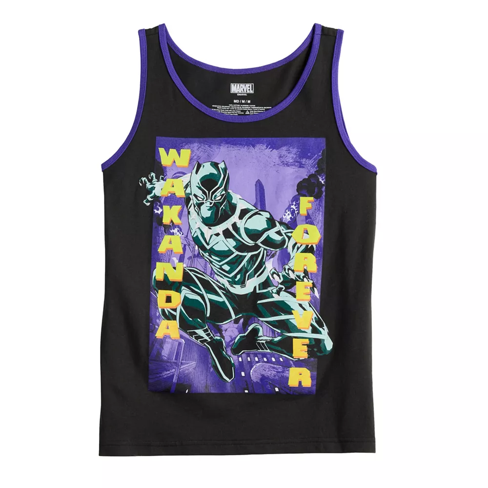 He’ll be Wakanda Strong wearing this boys’ Marvel Black Panther tank top.