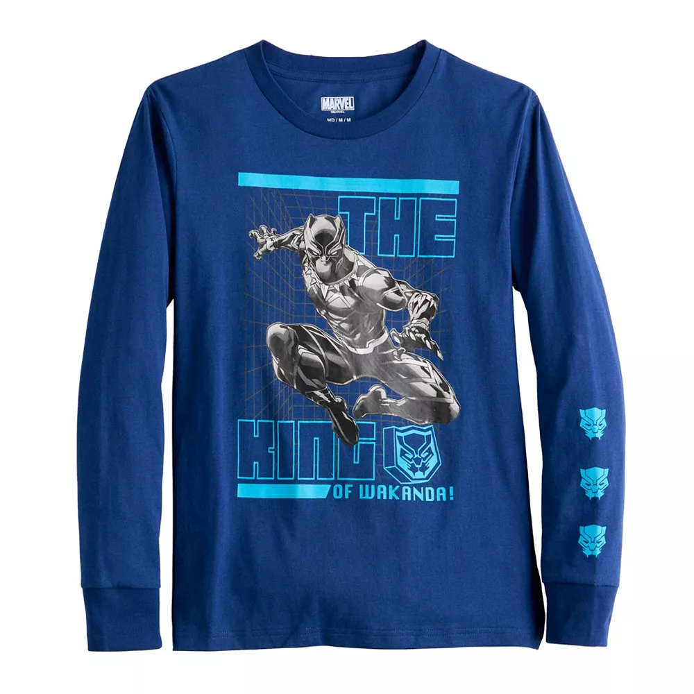 He’ll love showing off his personal style with this boys’ Marvel Black Panther Wakanda Long Sleeve Graphic Tee.