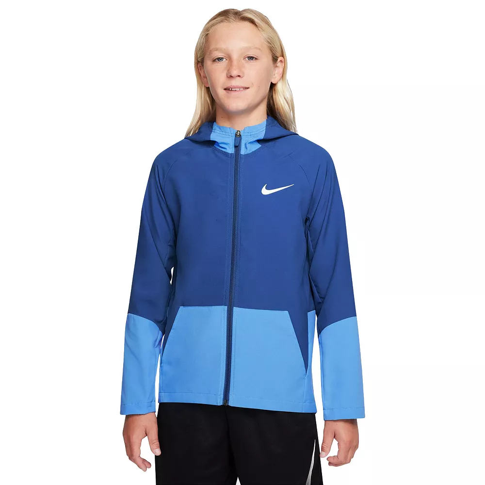 Lightweight and sweat-wicking, this Nike boys’ woven jacket is the perfect layer for his active style.