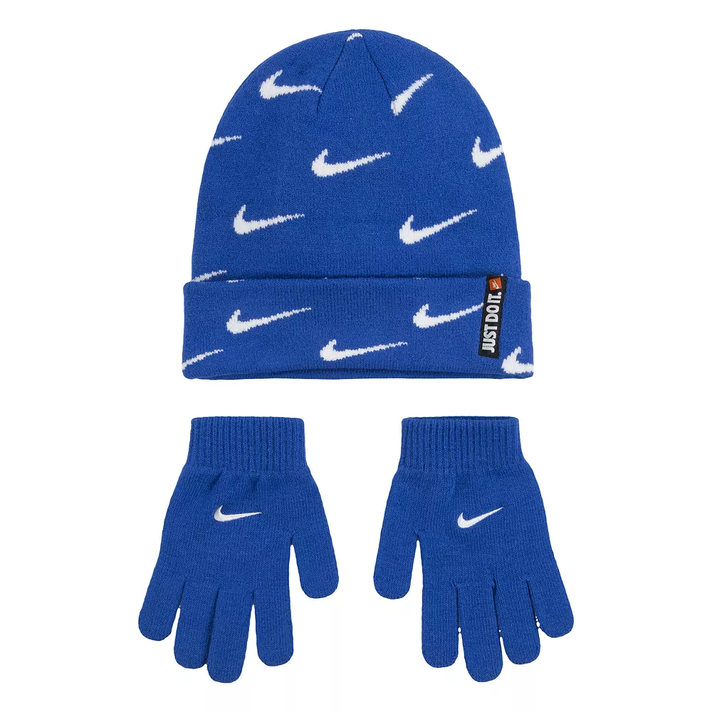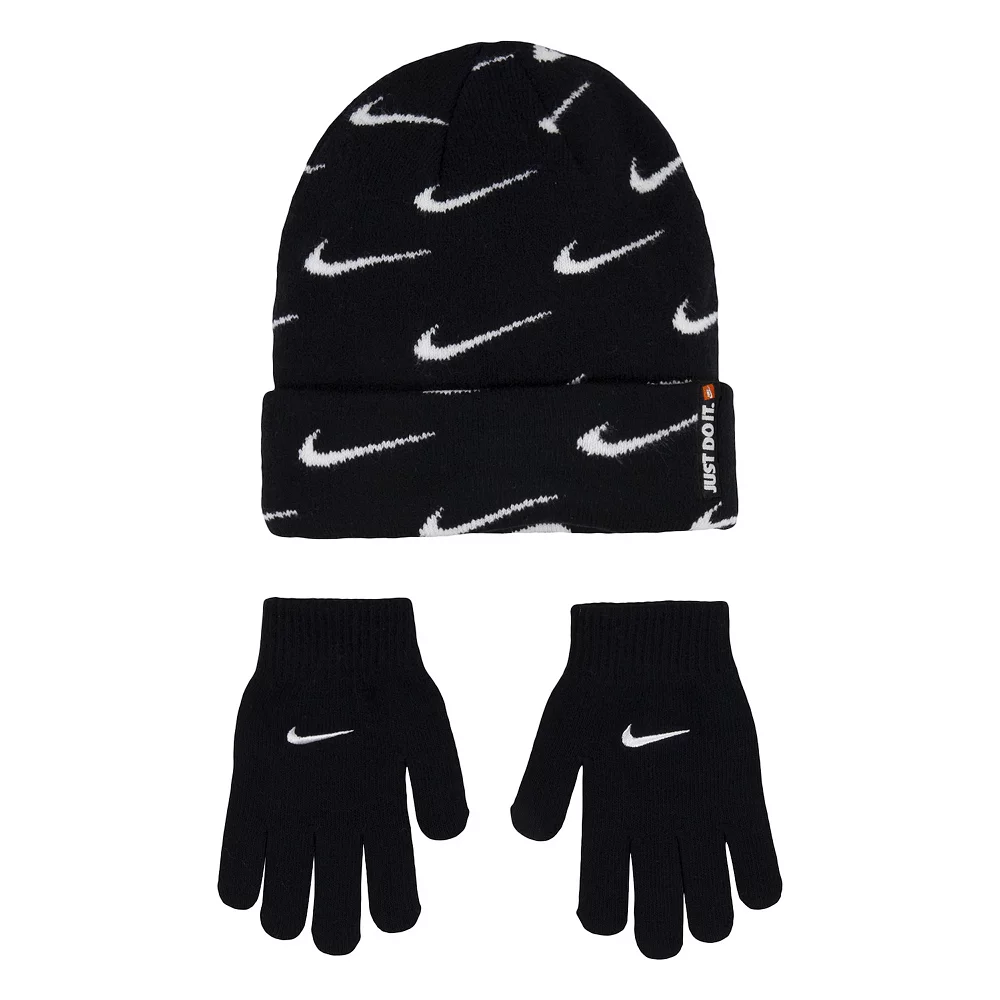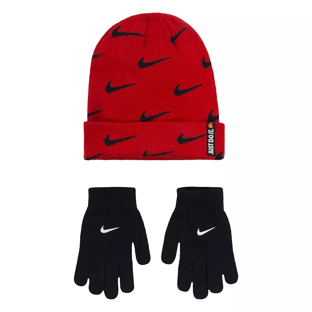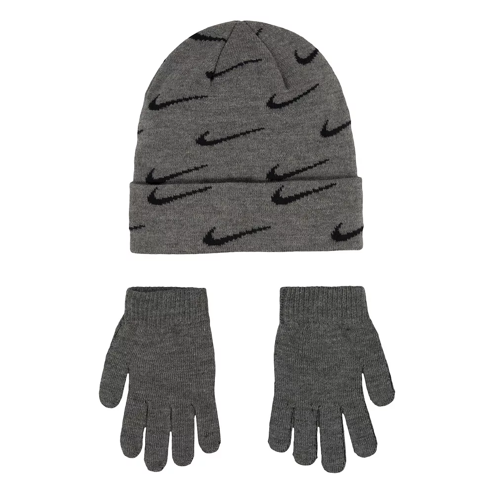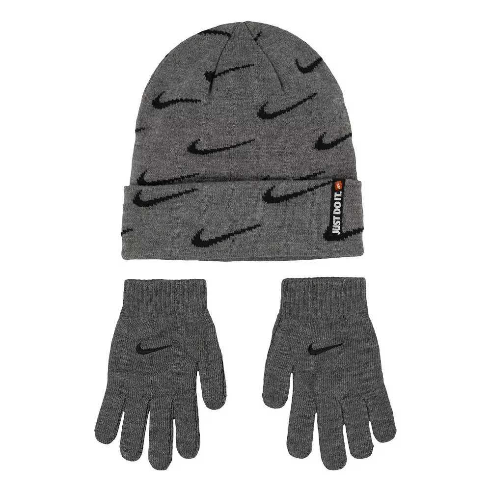 He’ll stay warm and look oh-so-cool in this boys’ beanie and gloves set from Nike.