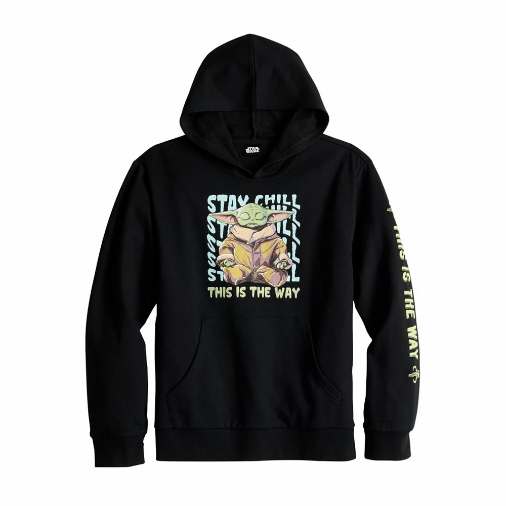 The force is strong with this warm boys’ “Stay Chill” Grogu hoodie.