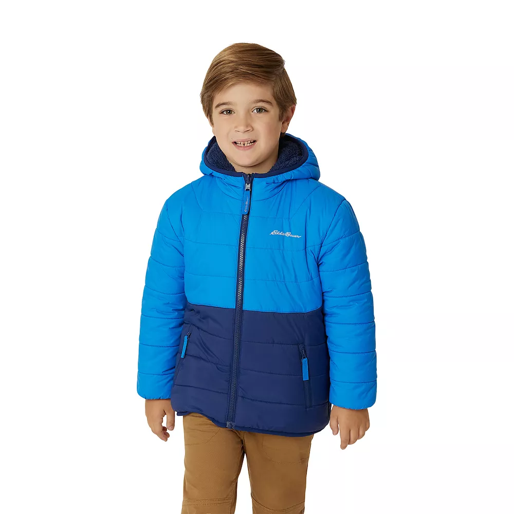 Your trailblazer will be ready for anything in this boys’ Deer Harbor reversible jacket from Eddie Bauer, the pinacle of outdoor comfort.