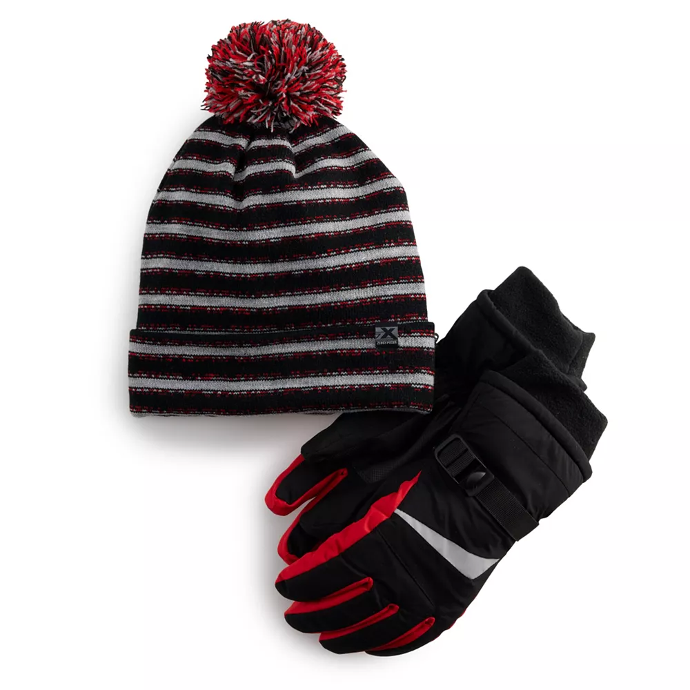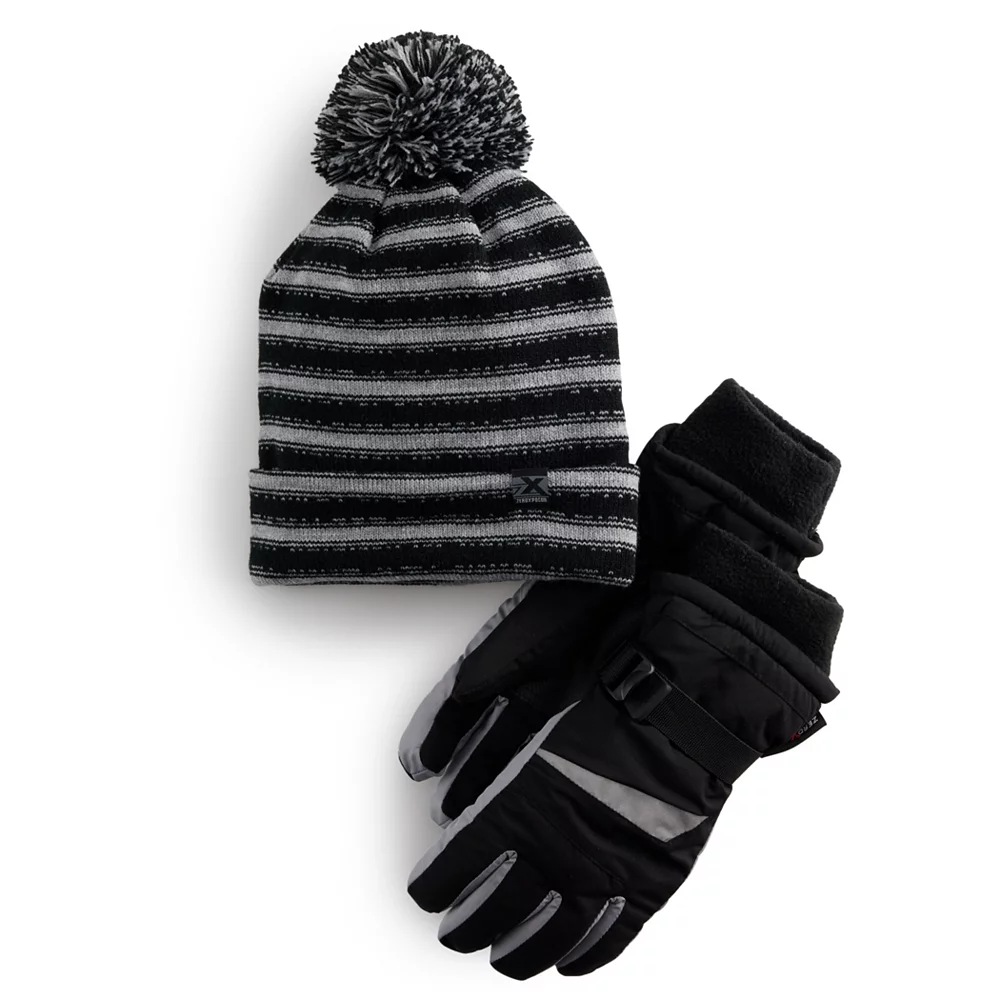 Give his cozy warmth and cool style for cold-weather days with this boys’ ZeroXposur pom cuffed beanie hat and gloves set.
