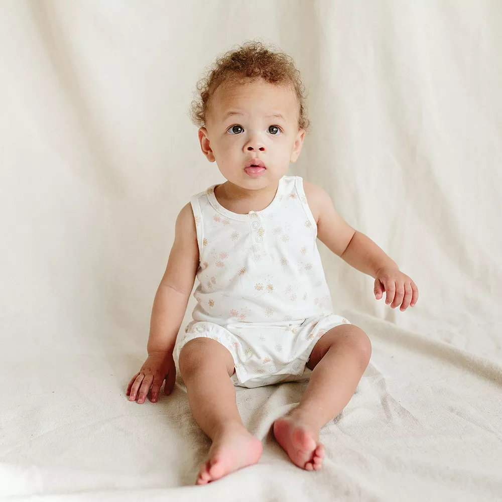 The goumi piece everyone’s been asking for. This romper is the coziest day wear for your babes. Perfect for warm weather play and cozy enough for sleep. Plus it looks so cute layered under a knit or paired with boots on chillier days.