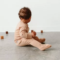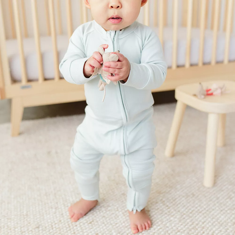 A thoughtfully-designed, organic cotton blend footie pajama that is versatile, breathable, and SUPER soft. Features two-way zipper for easy diaper changes, a cute bum flap for a quick diaper check, and option for open toes when baby is mobile.