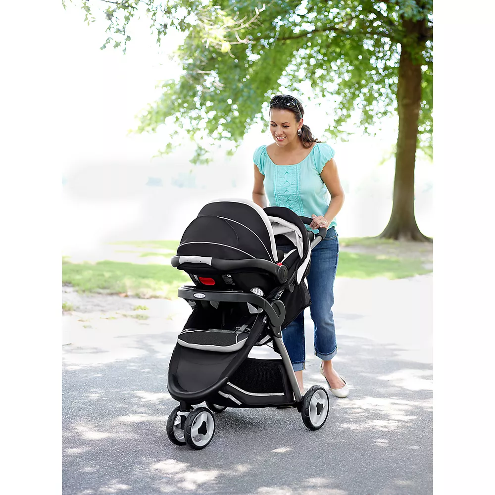 This Graco FastAction Sport travel system with SnugRide Click Connect 35 car seat provides a secure, one-step attachment of the infant car seat to the stroller for convenience when you’re on-the-go.