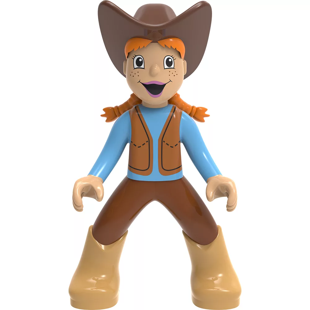 - Recreate a charming railroad scene with buildable track pieces, a train engine and car, plus fun play figures – a train engineer, a cowgirl, and a horse!