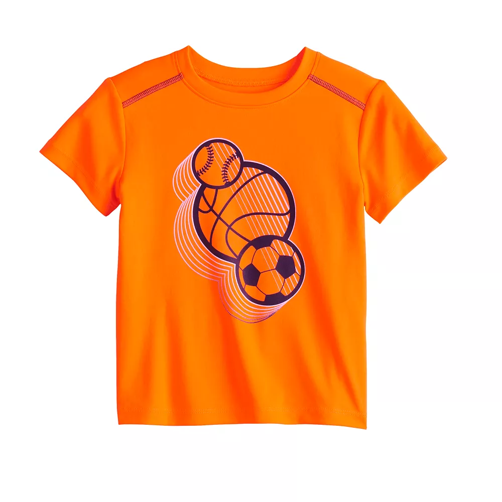 He’ll stay active in style in this boys’ Jumping Beans adaptive active tee.